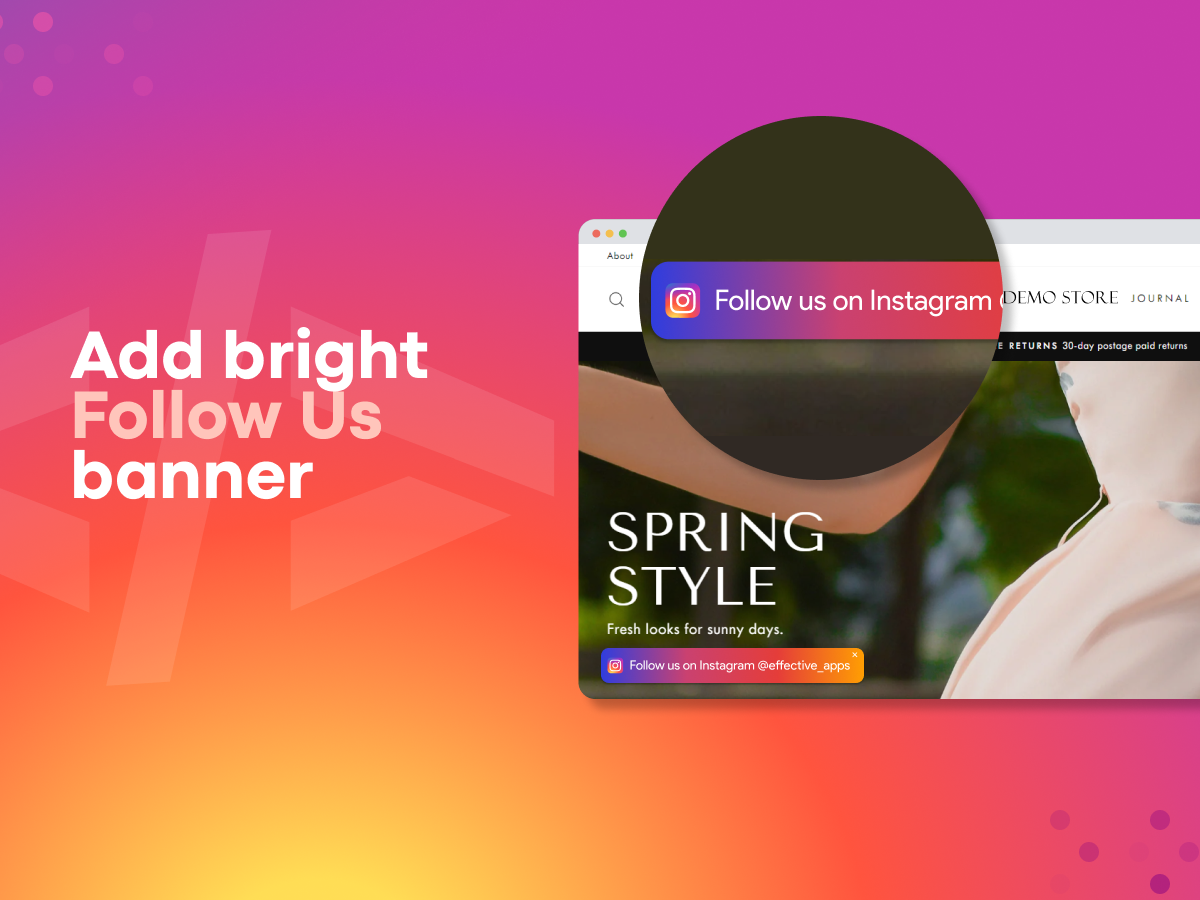 Floating “Follow Us” Banner: Catch visitors’ attention with an eye-catching banner that encourages them to follow your Instagram profile