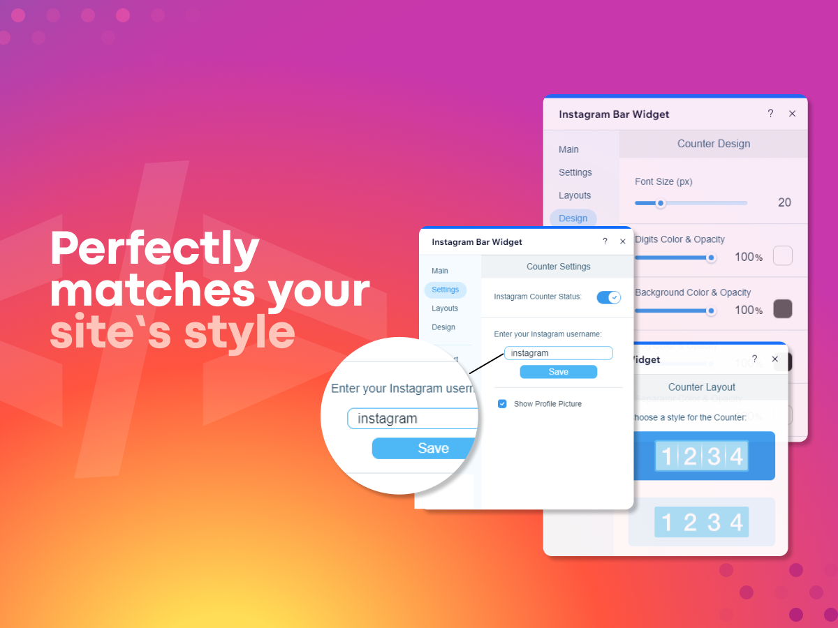 Easily tailor the Instagram Followers Counter to match your site’s style. Adjust colors, layouts, borders, opacity, and size to create a seamless, professional look that blends perfectly with your brand. The counter updates automatically to reflect your current number of followers in real time.