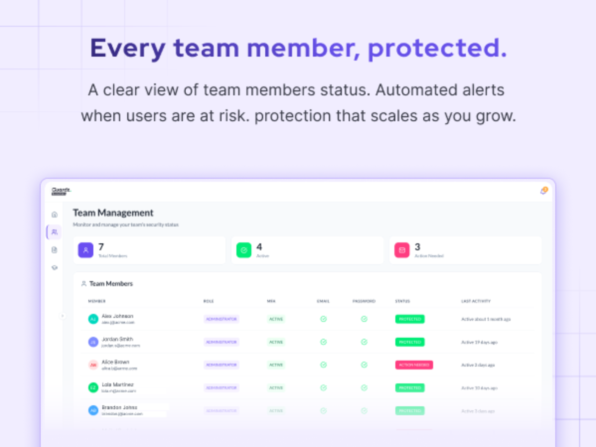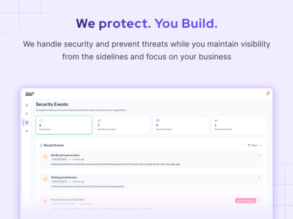 Our app continuously monitors your email, Google Workspace and accounts for threats, so you stay protected while focusing on your business.