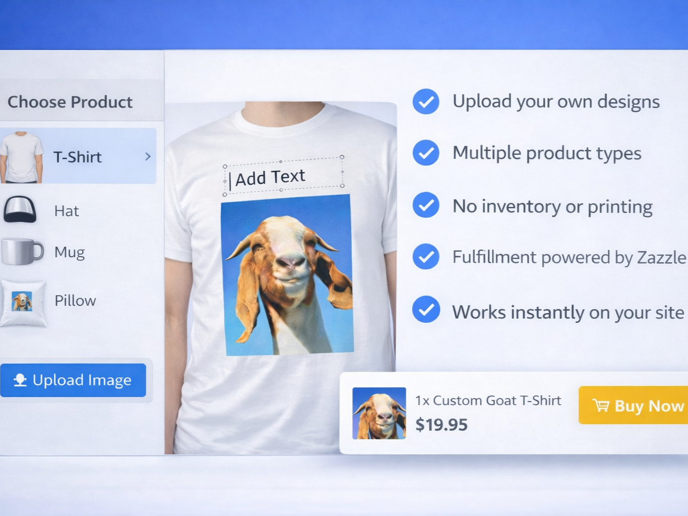 Perfect for creators, small businesses, bloggers, and event organizers who want a simple way to sell merchandise without handling production or shipping.