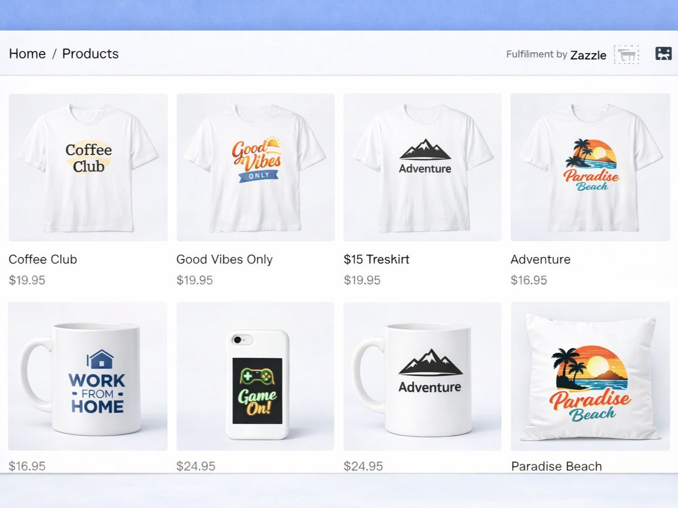 Display individual products or full Zazzle catalogs, customize the look to match your site, and earn affiliate commissions from every sale - all without managing inventory or fulfillment.