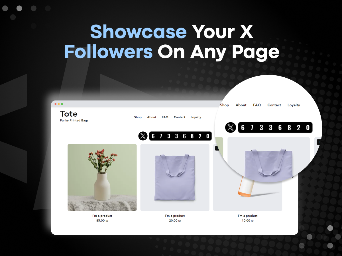 Show off your real-time X (Twitter) followers with a sleek, customizable counter and strengthen your website’s social proof by highlighting your active presence on one of the world’s most popular platforms: X (formerly Twitter).