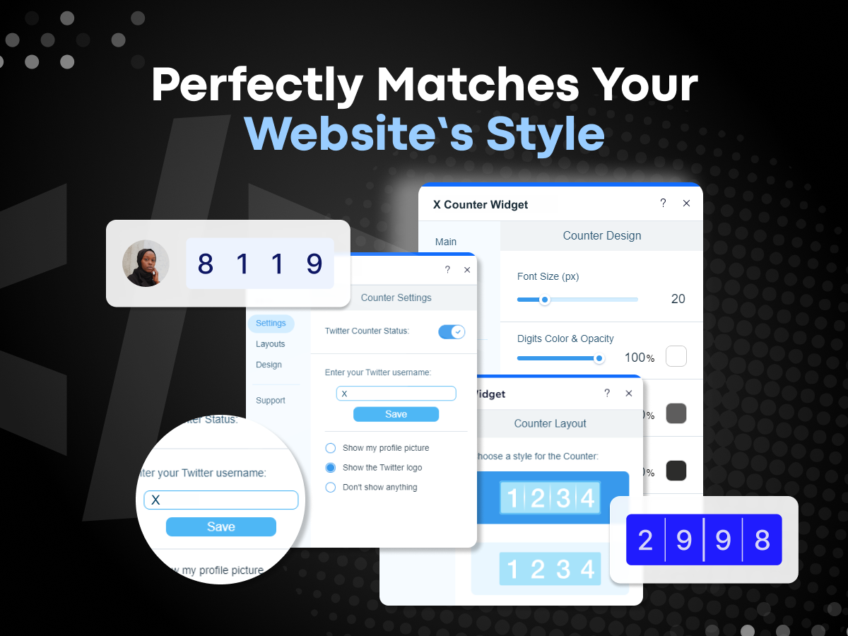X (Twitter) Followers Counter lets you display your follower count in a stylish, fully customizable counter that updates automatically. Match your site’s branding by adjusting colors, opacity, layouts, borders, fonts, backgrounds, and sizes for seamless integration. Choose between minimal, modern, or bold designs that capture attention while staying consistent with your site’s unique identity.