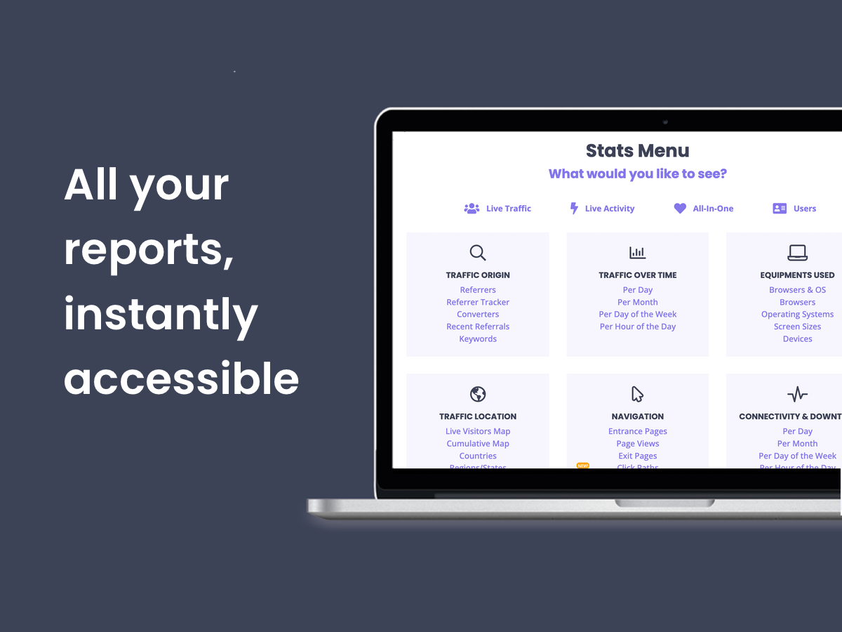 Powerful analytics, clearly presented: access the same high-quality visitor data you expect from advanced analytics tools, delivered in clean, easy-to-read reports designed for immediate understanding and action